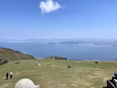 上:びわ湖バレイから琵琶湖を望む,下:和気神社の大絵馬