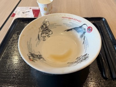 量は問題ありませんでした.箸で麺を取るのに苦労し,スープ以外を食べ終えるのに12分ほどかかりました.スープを飲み干すのは,1分くらいでした.